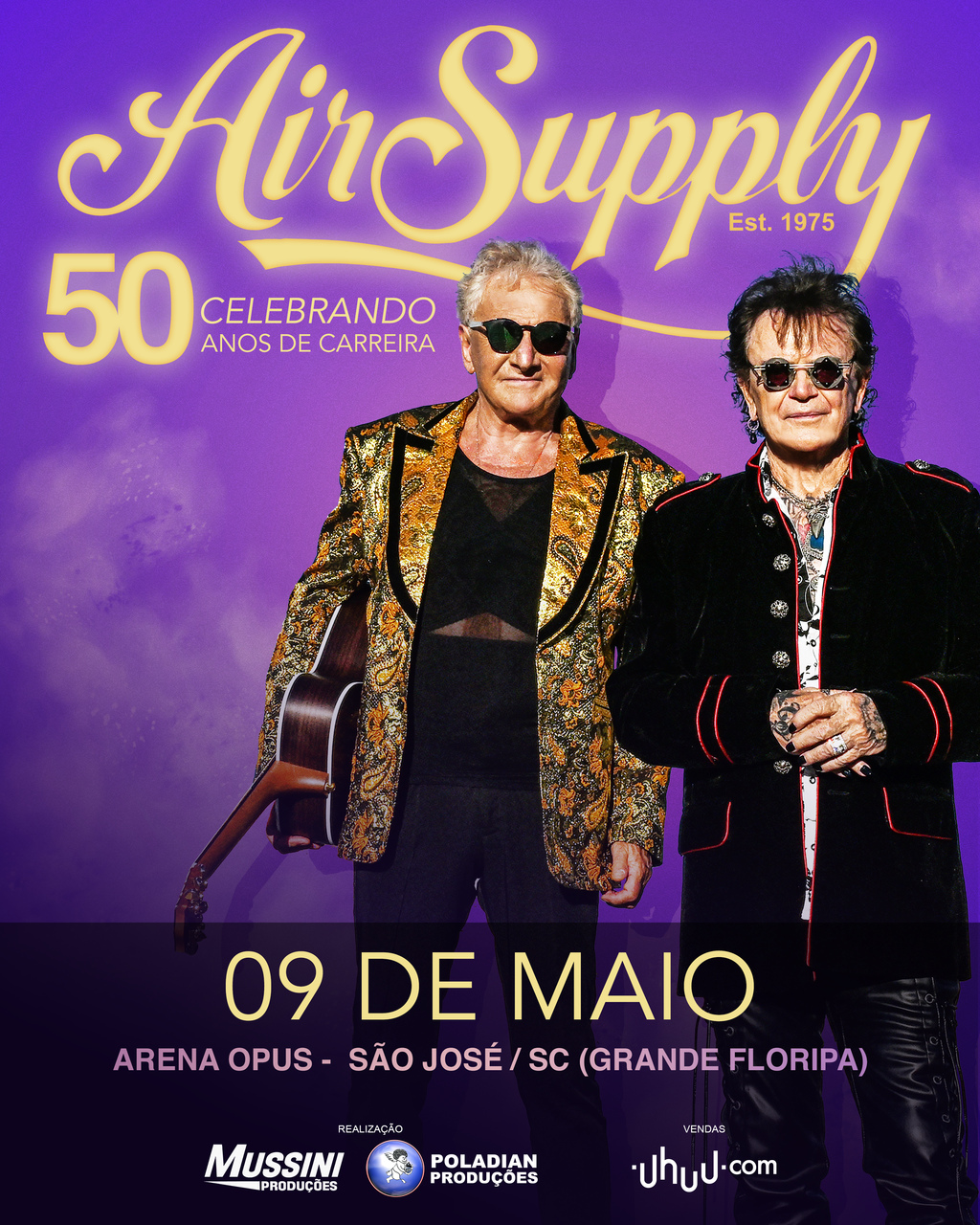 Coroando essa trajetória histórica que iniciou exatamente no dia 12 de maio de 1975 quando a dupla se conheceu, o Air Supply preparou uma turnê especial de 50 anos para festejar ao lado de seus fãs, reunindo grandes sucessos, emoção e a essência que transformou a dupla em um dos nomes mais icônicos da música romântica mundial.