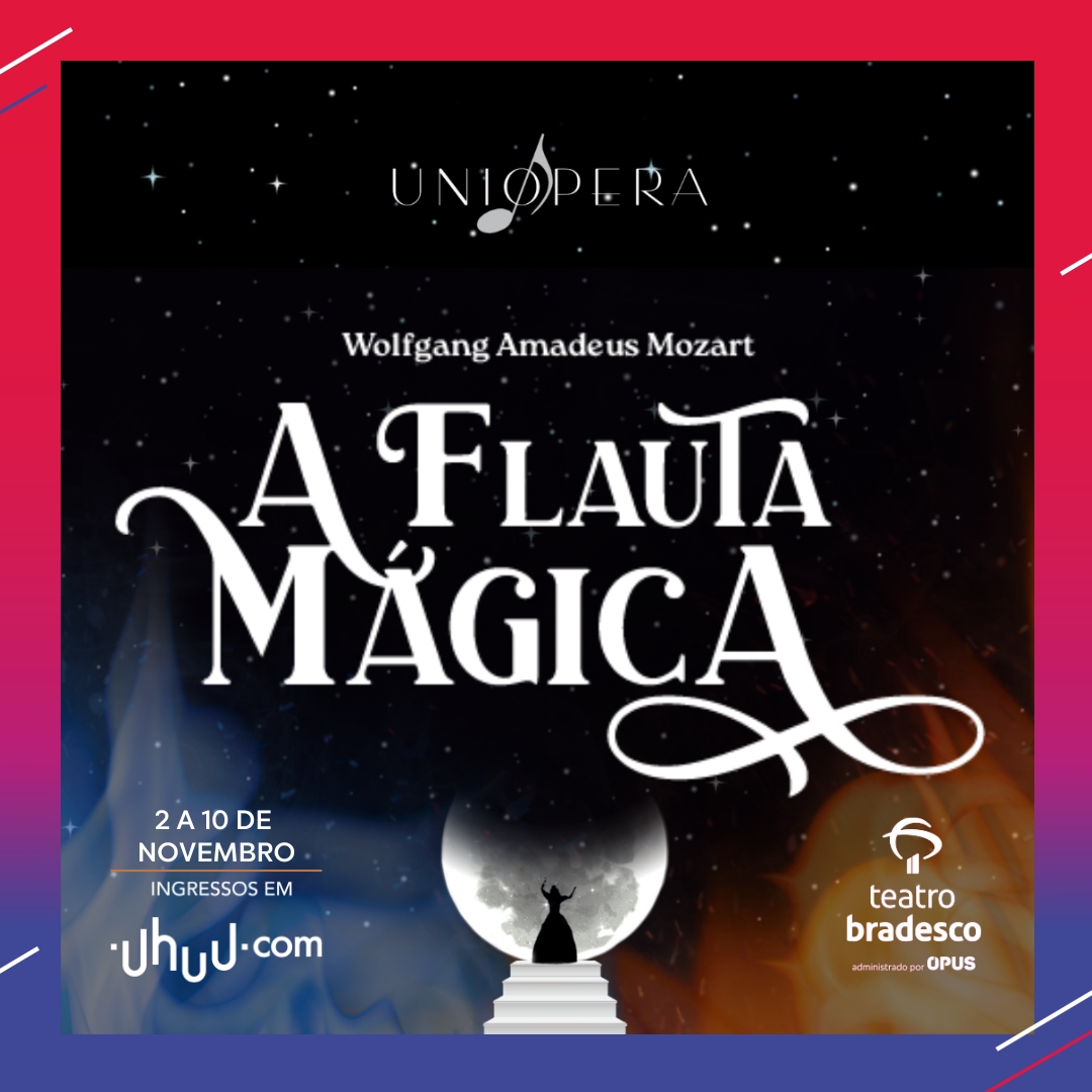 A UNIOPERA apresenta a mais célebre ópera de Mozart – A Flauta Mágica – que narra a saga do príncipe Tamino e do atrapalhado Papagueno para libertar a princesa Pamina dos desmandos da Rainha da Noite.