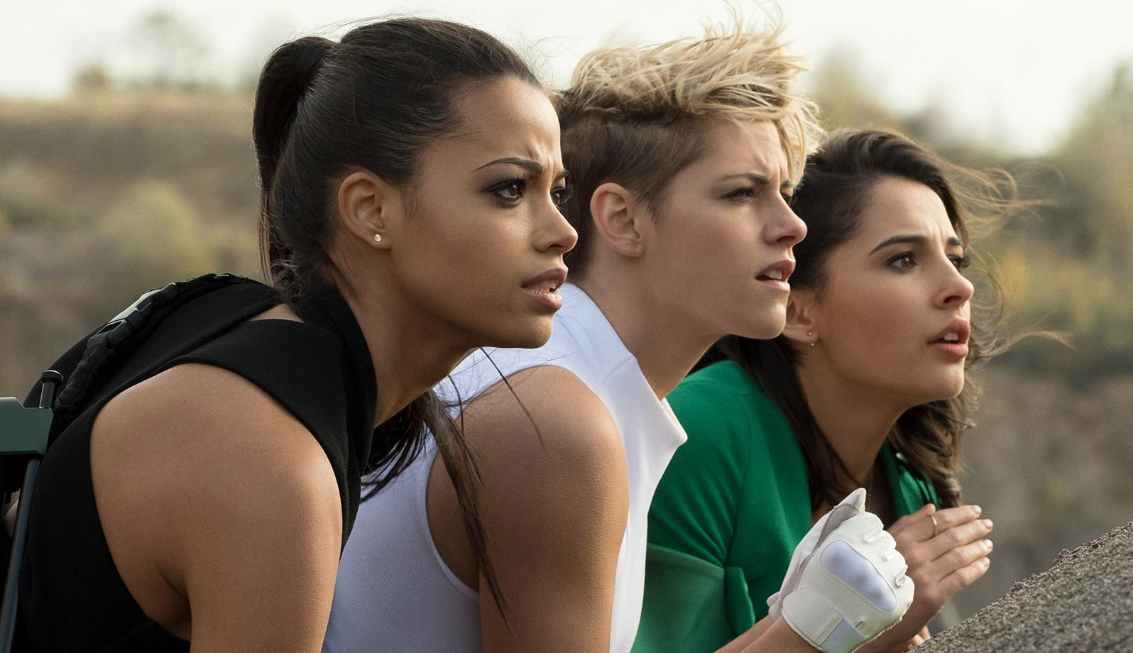 Ella Balinska, Kristen Stewart e Naomi Scott em ‘As Panteras’.