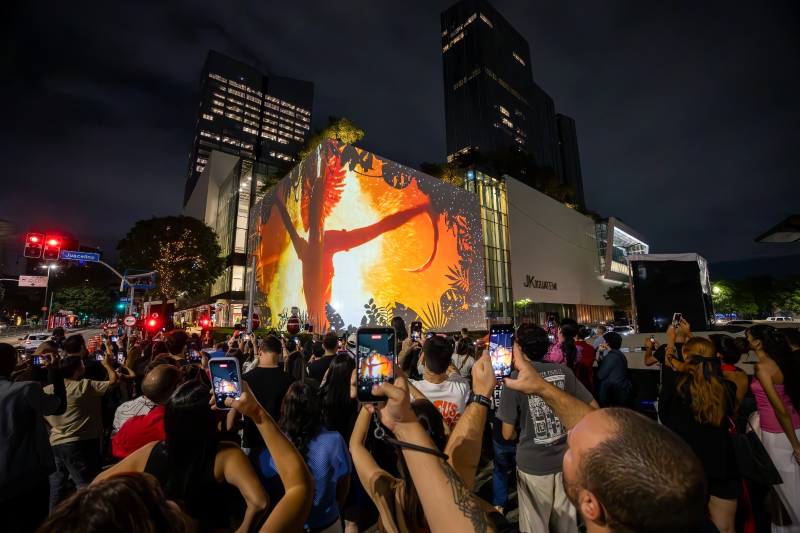 Ação realizada neste domingo (21) trouxe projeção visual exclusiva na fachada do JK Iguatemi e coquetel para convidados