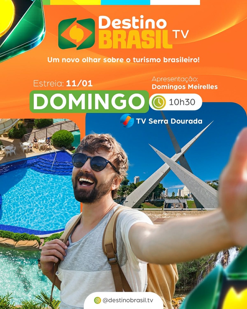Brasil, 12 de janeiro de 2026 – Um novo programa televisivo dedicado à análise do turismo brasileiro passa a ser exibido a partir de Goiânia (GO) com veiculação em todo território de Goiás, um dos principais polos turísticos do Centro-Oeste. Intitulado Destino Brasil TV, o projeto tem como proposta apresentar o turismo nacional sob uma perspectiva informativa e analítica, combinando entretenimento, dados setoriais e discussões estruturais sobre o desenvolvimento do setor. A atração será exibida pela emissora SBT – TV Serra Dourada, com episódios de 30 minutos de duração. A exibição está prevista para todo domingo das 10h30 às 11h00, com estreia no dia 11.01.26 e será transmitido durante o ano de 2026. Ao todo, estão previstos 52 episódios nesta primeira fase do programa. Com gravações realizadas em diferentes regiões do país, Destino Brasil TV aborda temas como infraestrutura turística, hotelaria, mobilidade, atrativos, planejamento urbano e bem-estar dos viajantes. A escolha de Goiás como cenário inicial reflete o papel estratégico do estado no turismo nacional, reconhecido pela concentração de estâncias termais, parques aquáticos, complexos hoteleiros de grande fluxo e pela posição geográfica central no território brasileiro. Além da apresentação de destinos, o programa abre espaço para debates que envolvem representantes da sociedade civil, especialistas, empresários e agentes do setor público e privado. A proposta editorial prioriza discussões sobre desafios, oportunidades e caminhos para o fortalecimento do turismo como atividade econômica estruturante. Criado pelo diretor audiovisual Maurício Donato, e com apresentação de um dos jornalistas mais premiado do Brasil Domingos Meirelles. A iniciativa contribui para ampliar o debate qualificado sobre o turismo no país. “O turismo brasileiro tem impacto direto na economia, na geração de empregos e no desenvolvimento regional. Criar um espaço dedicado à análise desses temas é fundamental para pensar o futuro do setor”, afirmou o produtor do programa. Com apresentação do jornalista Domingos Meirelles, Destino Brasil TV se posiciona como uma produção voltada à compreensão do turismo nacional em suas múltiplas dimensões, explorando o potencial econômico, social e territorial da atividade em diferentes contextos do país. Para quem mora fora de Goiás, poderá acompanhar e assistir a temporada por meio do canal do Youtube: Link . O conteúdo estará ainda disponível nas redes sociais Facebook, TikTok e Instagram, pelo perfil destinobrasiltv.