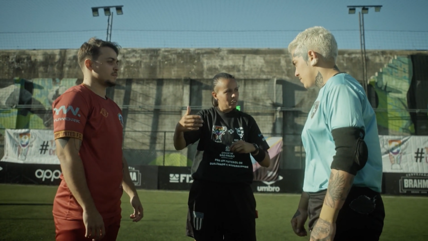 Desde menino, conta Pedrinho, a bola já desenhava um destino. Morava em um prédio onde as meninas brincavam de boneca; ele, antes mesmo de qualquer transição de gênero, procurava os outros meninos para jogar. O gesto, simples e insistente, atravessa o tempo: jogar é, para ele, uma forma de permanecer fiel a si mesmo. O documentário recolhe essa memória sem sublinhados, deixando que a narrativa se construa na cadência dos treinos, nos deslocamentos e nos silêncios antes das partidas.