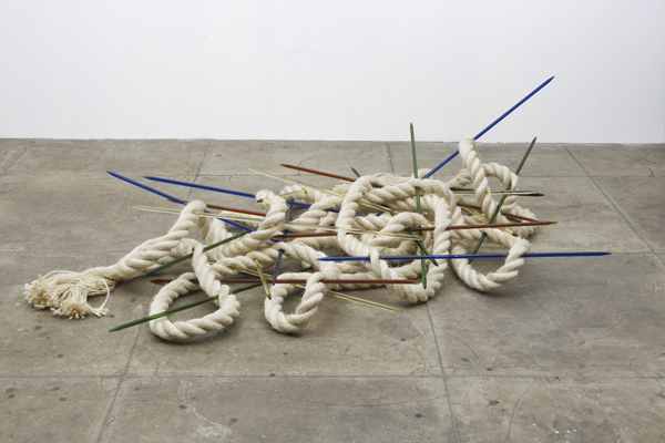 “DENTRO/FORA” explora a relação entre matéria e forma, utilizando materiais como tela de aço galvanizado, acrílico, vidro e metais variados. Inspirada pelo movimento “American Anti-Form” dos anos 1960 e por artistas como Eva Hesse e Robert Morris, Baranek cria esculturas que frequentemente permanecem no chão, evocando continuidade e transformação.