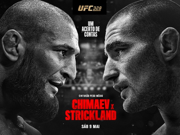 Khamzat Chimaev defende seu título dos médios contra Sean Strickland na luta principal, no Prudential Center, em Newark, Nova Jersey.