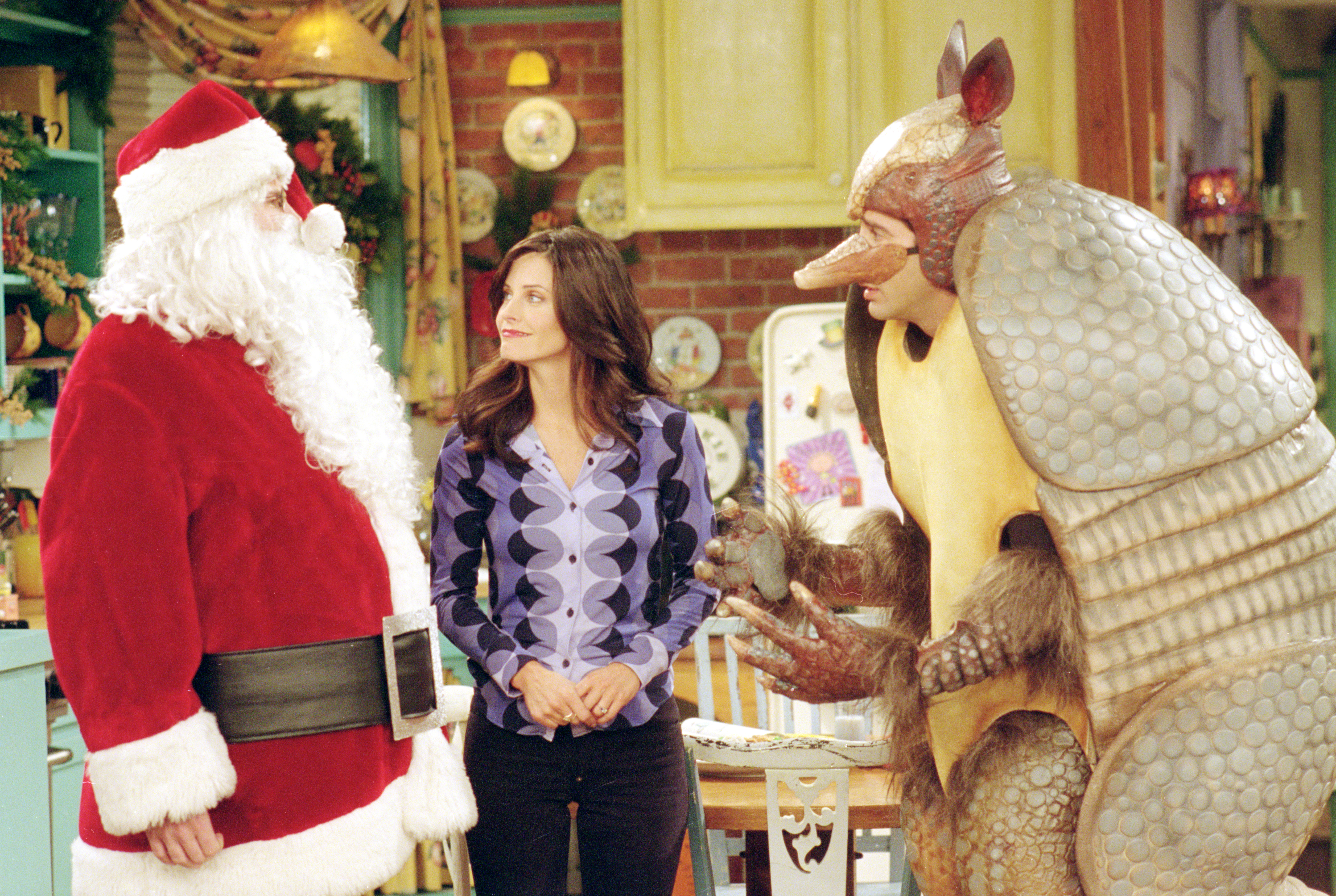 - “Aquele com o Tatu das Festividades” (Temporada 7, Episódio 10): provavelmente o episódio festivo mais icônico, em que Ross se fantasia de Tatu Natalino para ensinar Hanukkah a Ben, enquanto Chandler se veste de Papai Noel e Joey de Superman – uma mistura perfeita de Natal e Hanukkah.