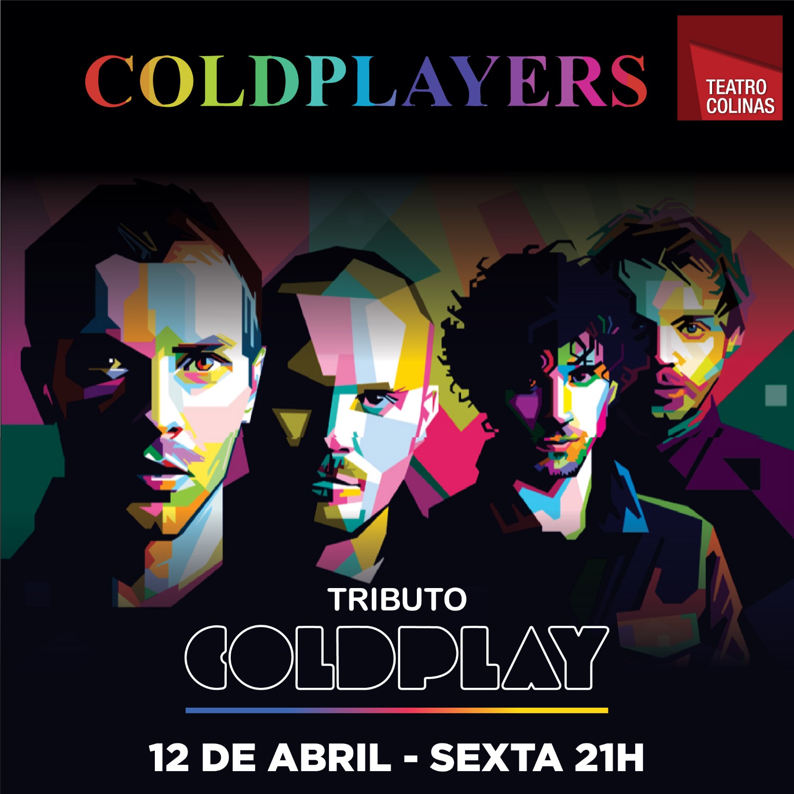 O Teatro Colinas recebe nesta sexta-feira, às 21h, um tributo ao Coldplay. Criada na capital de São Paulo, a banda Coldplayers promete fidelidade musical, projeções visuais e muitas luzes coloridas num show de tirar o fôlego!