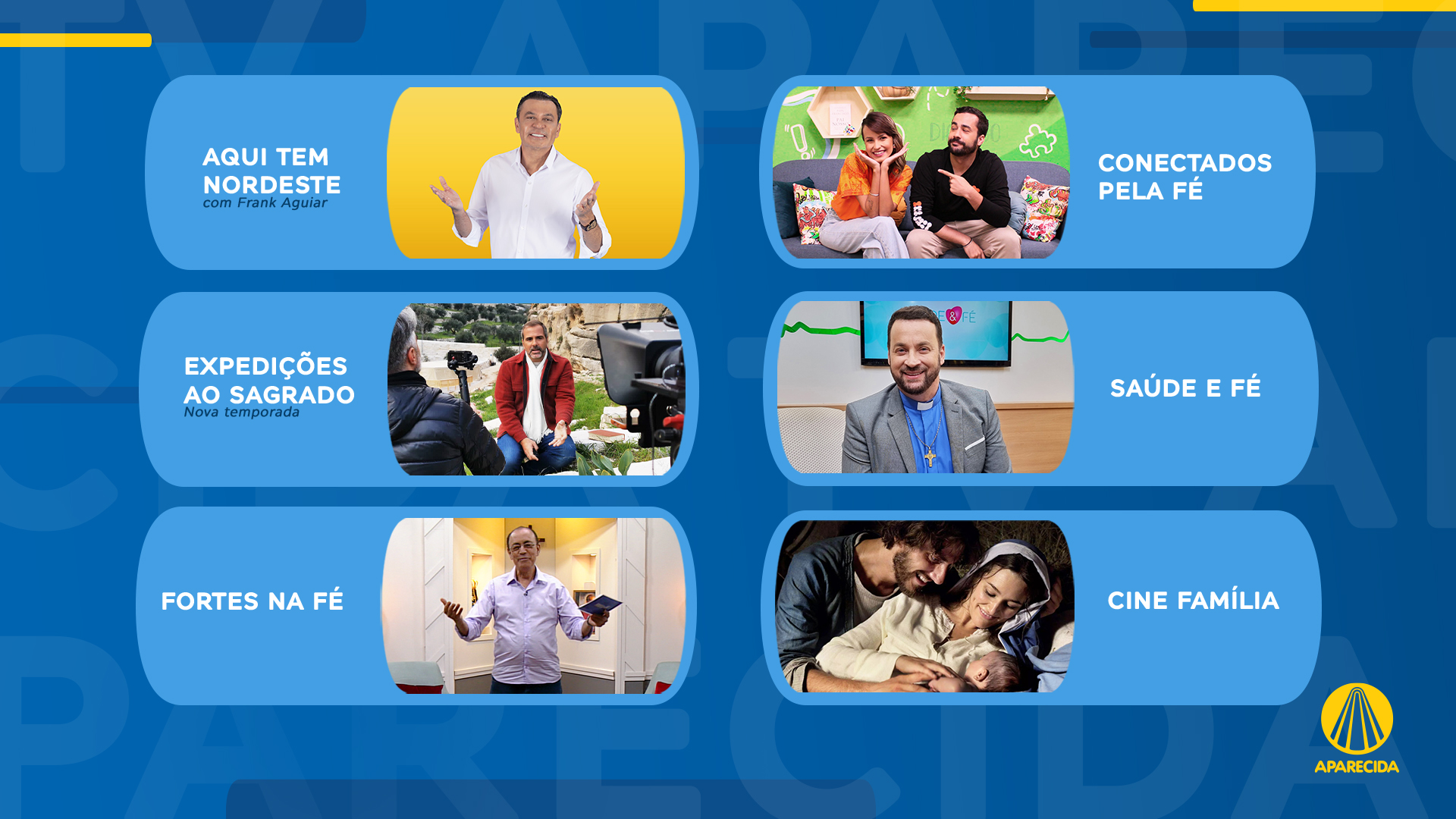 TV Aparecida está preparando uma série de novidades em sua programação a partir do mês de maio. Dentre os destaques estão uma nova atração dedicada à rica cultura nordestina, com apresentação de Frank Aguiar, e a 2ª temporada de “Expedições ao Sagrado”, com Rodrigo Alvarez. A emissora ainda terá novos horários e exibições especiais de eventos importantes no calendário litúrgico da Igreja e do Santuário Nacional de Aparecida.