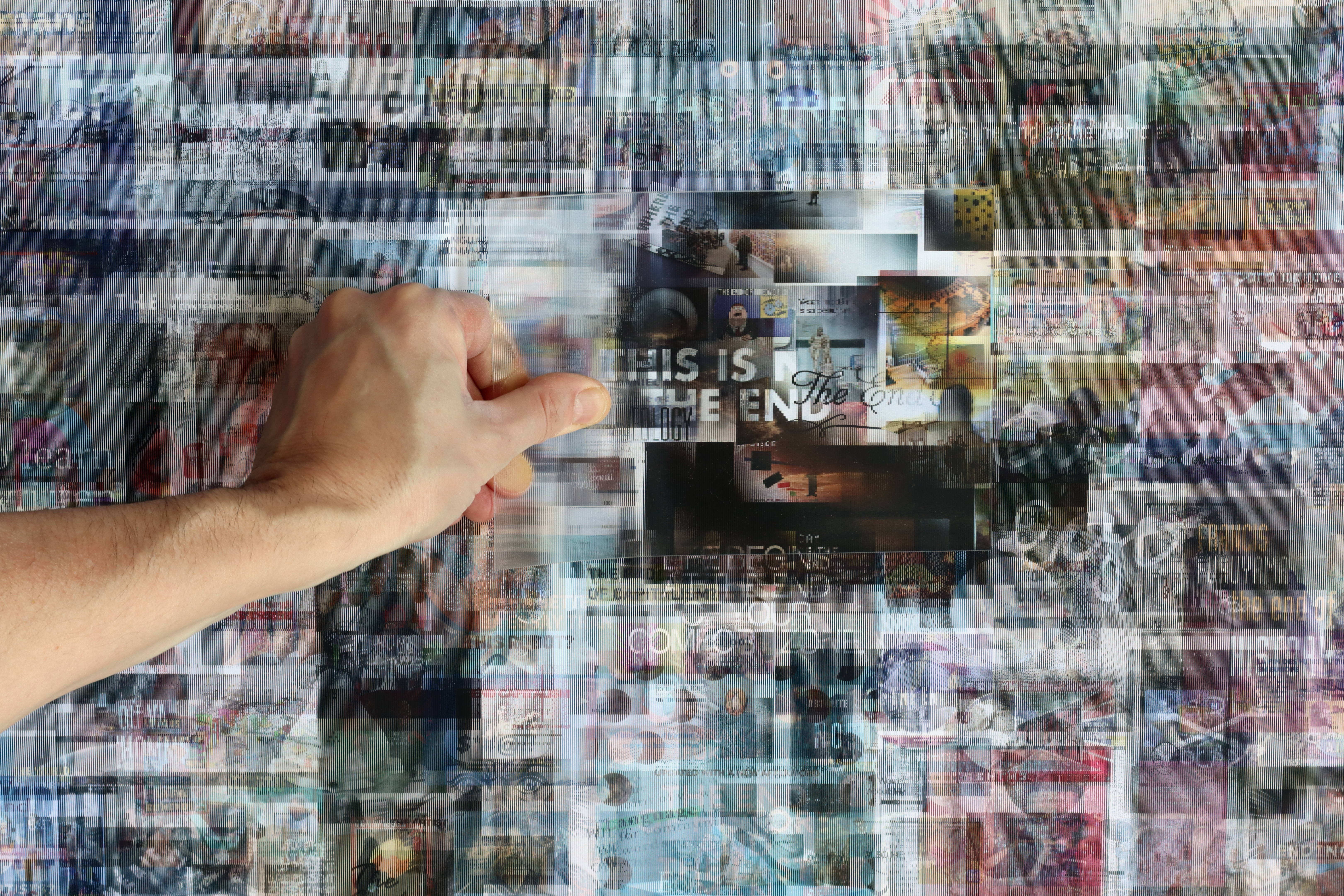 A instalação interativa “THE END OF ART IS NOT THE END”, uma das mais notáveis de Pascal, encerra a mostra convidando os espectadores a refletir sobre o futuro da arte e da sociedade. Composta por mais de 20.000 imagens retiradas de pesquisas no Google sobre “O fim da arte”, a obra cria uma narrativa contínua que adere à parede como uma pele, revelando o invisível através do movimento do espectador. Dombis, como um verdadeiro lançador de alerta, questiona as mudanças estruturais da sociedade, oferecendo uma obra atravessada pela noção do tempo em todas as suas dimensões, debatendo temas como linguagem, saturação de informação e a crescente influência da sociedade digital.